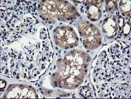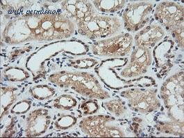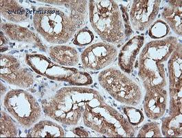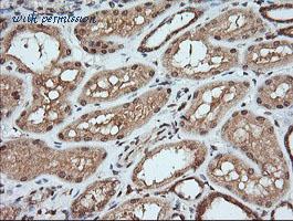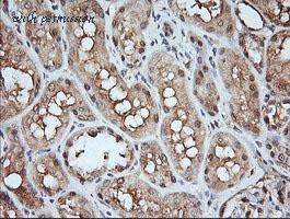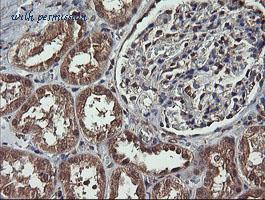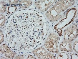 IHC of paraffin-embedded Human Kidney tissue using anti-MAP2K1 mouse monoclonal antibody. (Heat-induced epitope retrieval by 10mM citric buffer, pH6.0, 120°C for 3min).