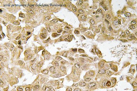 IHC of paraffin-embedded Carcinoma of Human liver tissue using anti-MAP2K1 mouse monoclonal antibody. (Heat-induced epitope retrieval by 10mM citric buffer, pH6.0, 120°C for 3min).