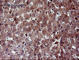 IHC of paraffin-embedded Human liver tissue using anti-MAP2K1 mouse monoclonal antibody. (Heat-induced epitope retrieval by 10mM citric buffer, pH6.0, 120°C for 3min).