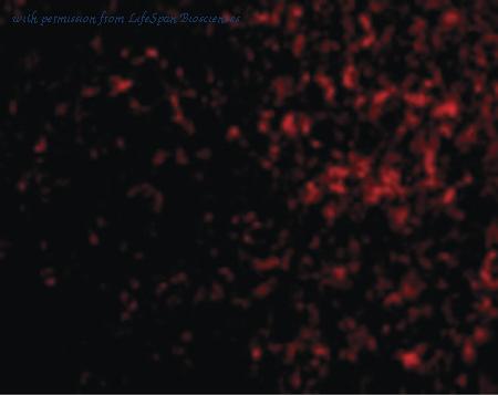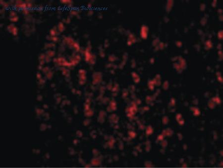 Immunofluorescence of AVEN in Human Spleen cells with AVEN antibody at 20 ug/ml.