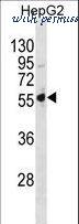 PSMD5 Antibody western blot of HepG2 cell line lysates (35 ug/lane). The PSMD5 antibody detected the PSMD5 protein (arrow).