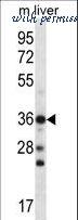 CBX8 Antibody western blot of mouse liver tissue lysates (35 ug/lane). The CBX8 antibody detected the CBX8 protein (arrow).