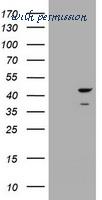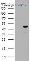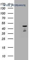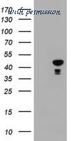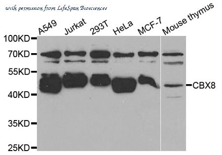 Western blot. All lanes: CBX8 antibody at 2 ug/ml+Jurkat whole cell lysate. Secondary antibody: Goat polyclonal to rabbit at 1:10000 dilution. Predicted band size: 43 kDa. Observed band size: 43 kDa Immunohistochemistry.