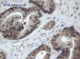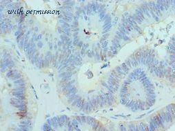 Immunohistochemistry of paraffin-embedded human colon cancer using antibody 1:100 dilution.