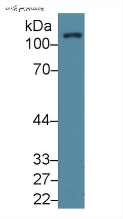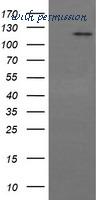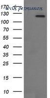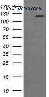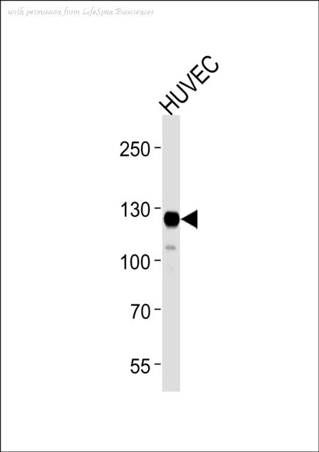 Western blot of lysate from HUVEC cell line with PTK2 Antibody. Antibody was diluted at 1:1000 at each lane. A goat anti-mouse IgG H&L (HRP) at 1:3000 dilution was used as the secondary antibody. Lysate at 35 ug per lane.