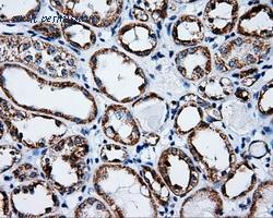 IHC of paraffin-embedded Kidney tissue using anti-KIAA1609 mouse monoclonal antibody. (Dilution 1:50).