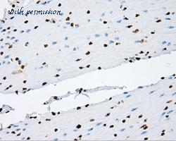IHC of paraffin-embedded breast tissue using anti-KIAA1609 mouse monoclonal antibody. (Dilution 1:50).