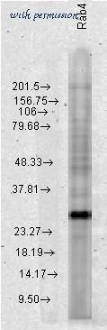 Western blot. All lanes: Ras-related protein Rab-4A antibody at 2 ug/ml+mouse brain tissue. Secondary antibody: Goat polyclonal to rabbit at 1:10000 dilution. Predicted band size: 24 kDa. Observed band size: 24 kDa Immunohistochemistry.