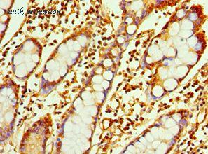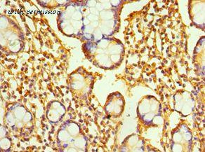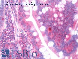 Immunohistochemistry of paraffin-embedded human small intestine using antibody at 1:100 dilution.
