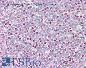 Anti-RAD51B antibody IHC staining of human tonsil. Immunohistochemistry of formalin-fixed, paraffin-embedded tissue after heat-induced antigen retrieval. Antibody concentration 10 ug/ml. This image was taken for the unconjugated form of this product. Other forms have not been tested.