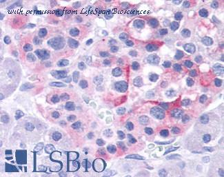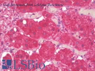 Anti-TRPV4 antibody IHC staining of human adrenal. Immunohistochemistry of formalin-fixed, paraffin-embedded tissue after heat-induced antigen retrieval. Antibody concentration 10 ug/ml.