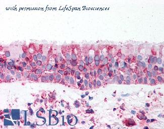 Immunofluorescence of TRPV4 in human lung tissue with TRPV4 antibody at 20 µg/mL.