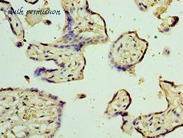Immunohistochemistry of paraffin-embedded human placenta using antibody at 1:100 dilution.