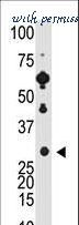 The anti-Recoverin C-term antibody is used in Western blot to detect Recoverin in Y79 cell lysate.