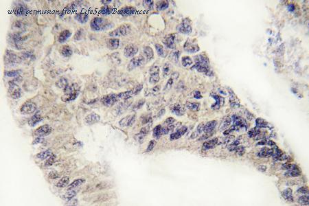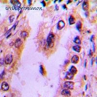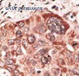 Formalin-fixed and paraffin-embedded human cancer tissue reacted with the primary antibody, which was peroxidase-conjugated to the secondary antibody, followed by DAB staining. This data demonstrates the use of this antibody for immunohistochemistry; clinical relevance has not been evaluated. BC = breast carcinoma; HC = hepatocarcinoma.