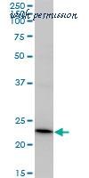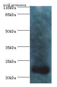 Western blot. All lanes: Recoverin antibody at 2 ug/ml+mouse eye tissue. Secondary antibody: goat polyclonal to rabbit at 1:10000 dilution. Predicted band size: 23 kDa. Observed band size: 23 kDa. This image was taken for the unconjugated form of this product. Other forms have not been tested.