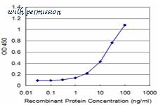 Detection limit for recombinant GST tagged RCV1 is approximately 1 ng/ml as a capture antibody.