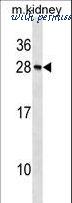 Mouse Rcvrn Antibody western blot of mouse kidney tissue lysates (35 ug/lane). The Rcvrn antibody detected the Rcvrn protein (arrow).