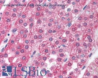 Anti-RCVRN / Recoverin antibody IHC of human adrenal. Immunohistochemistry of formalin-fixed, paraffin-embedded tissue after heat-induced antigen retrieval. Antibody concentration 5 ug/ml. This image was taken for the unconjugated form of this product. Other forms have not been tested.