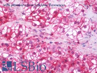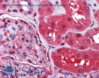 Anti-Radixin antibody IHC of human kidney. Immunohistochemistry of formalin-fixed, paraffin-embedded tissue after heat-induced antigen retrieval. Antibody concentration 2.5 ug/ml.