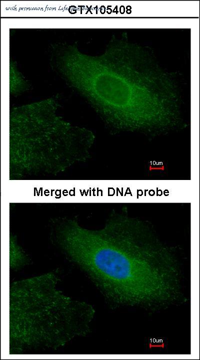Immunofluorescence of monoclonal antibody to RDX on HeLa cell . [antibody concentration 10 ug/ml]