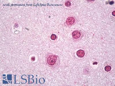 Anti-BACH2 antibody IHC of human brain, cortex neurons. Immunohistochemistry of formalin-fixed, paraffin-embedded tissue after heat-induced antigen retrieval. Antibody concentration 10 ug/ml.