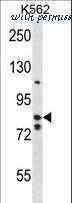 BACH2 Antibody western blot of K562 cell line lysates (35 ug/lane). The BACH2 antibody detected the BACH2 protein (arrow).