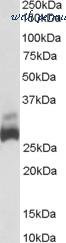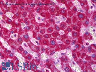 Antibody (0.03 ug/ml) staining of Human Liver lysate (35 ug protein in RIPA buffer). Primary incubation was 1 hour. Detected by chemiluminescence.