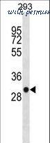 SDHB Antibody western blot of 293 cell line lysates (35 ug/lane). The SDHB antibody detected the SDHB protein (arrow).