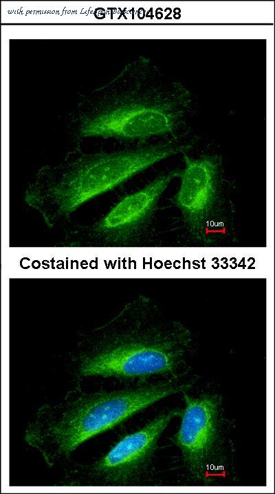 Immunofluorescence of methanol-fixed HeLa using SDHB antibody at 1:200 dilution.