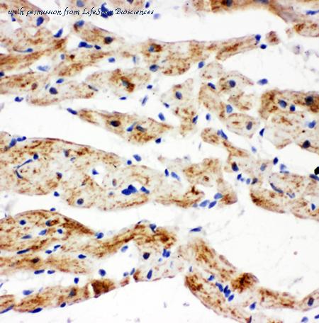 Anti-SDHB antibody IHC of human heart. Immunohistochemistry of formalin-fixed, paraffin-embedded tissue after heat-induced antigen retrieval. Antibody concentration 5 ug/ml.