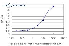 Detection limit for recombinant GST tagged TRAPPC2 is approximately 0.3 ng/ml as a capture antibody.