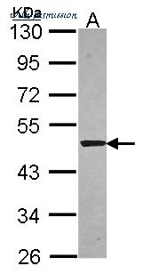 Sample (30 ug of whole cell lysate). A: A549. 10% SDS PAGE. SNTA1 / Syntrophin Alpha 1 antibody diluted at 1:5000.
