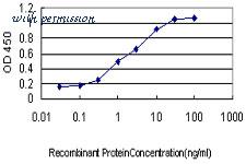 Detection limit for recombinant GST tagged SSR1 is approximately 0.03 ng/ml as a capture antibody.
