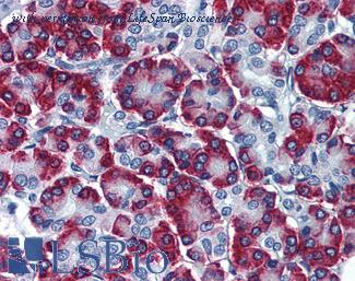 Anti-TRAP alpha antibody IHC of human pancreas. Immunohistochemistry of formalin-fixed, paraffin-embedded tissue after heat-induced antigen retrieval. Antibody concentration 5 ug/ml.
