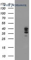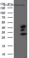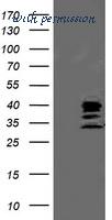 Western blot of extracts (35 ug) from 9 different cell lines by using anti-SSR1 monoclonal antibody.