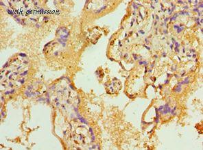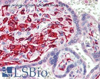 Immunohistochemistry of paraffin-embedded human placenta using antibody at 1:100 dilution.
