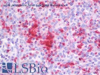 Anti-TGFB1 antibody IHC of human spleen. Immunohistochemistry of formalin-fixed, paraffin-embedded tissue after heat-induced antigen retrieval. Antibody concentration 5 ug/ml.