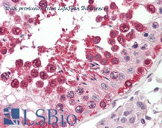 Anti-Translin antibody IHC of human testis. Immunohistochemistry of formalin-fixed, paraffin-embedded tissue after heat-induced antigen retrieval. Antibody dilution 5 ug/ml.