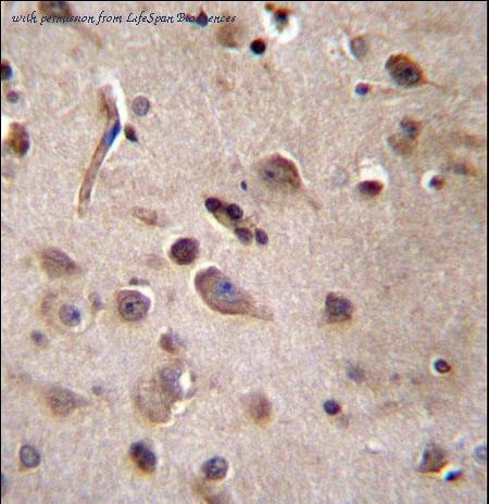 TSN Antibody immunohistochemistry of formalin-fixed and paraffin-embedded human brain tissue followed by peroxidase-conjugated secondary antibody and DAB staining.