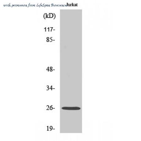 Western blot of Translin (E121) pAb in extracts from Jurkat cells.