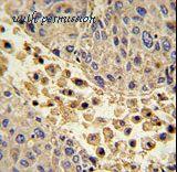 Immunohistochemistry of paraffin-embedded human liver tissue using antibody at 1:100 dilution.
