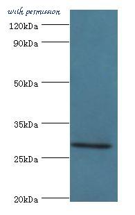 Western blot. All lanes: COLEC11 antibody at 4 ug/ml+rat liver tissue. Secondary antibody: Goat polyclonal to rabbit at 1:10000 dilution. Predicted band size: 29 kDa. Observed band size: 29 kDa.