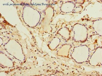 Immunohistochemistry of paraffin-embedded human thyroid tissue using antibody at dilution of 1:100.