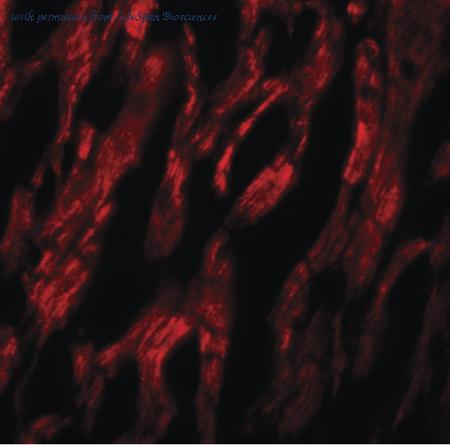 Immunofluorescence of ATG9A in human heart tissue with ATG9A antibody at 20 ug/ml.