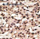 Immunohistochemistry of paraffin-embedded human breast cancer using antibody at 1:100 dilution.