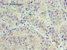 Immunohistochemistry of paraffin-embedded human liver cancer using antibody at 1:100 dilution.