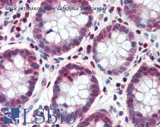 Anti-TCF7L1 antibody IHC of human colon. Immunohistochemistry of formalin-fixed, paraffin-embedded tissue after heat-induced antigen retrieval. Antibody concentration 5 ug/ml. This image was taken for the unconjugated form of this product. Other forms have not been tested.