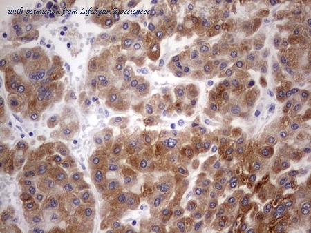 IHC of paraffin-embedded Carcinoma of Human liver tissue using anti-BFSP2 mouse monoclonal antibody. (Heat-induced epitope retrieval by 1 mM EDTA in 10mM Tris, pH8.5, 120°C for 3min).