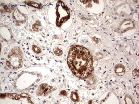 IHC of paraffin-embedded Human Kidney tissue using anti-BFSP2 mouse monoclonal antibody. (Heat-induced epitope retrieval by 1 mM EDTA in 10mM Tris, pH8.5, 120°C for 3min).